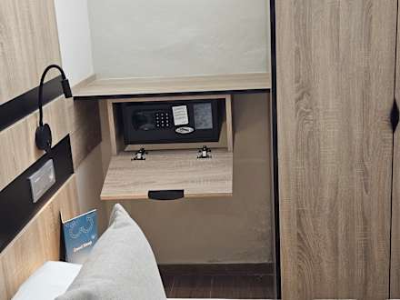 ZimmerGroßer kostenloser Safe. Hier passt problemlos ein Laptop rein (er ist grösser als DIN A4)