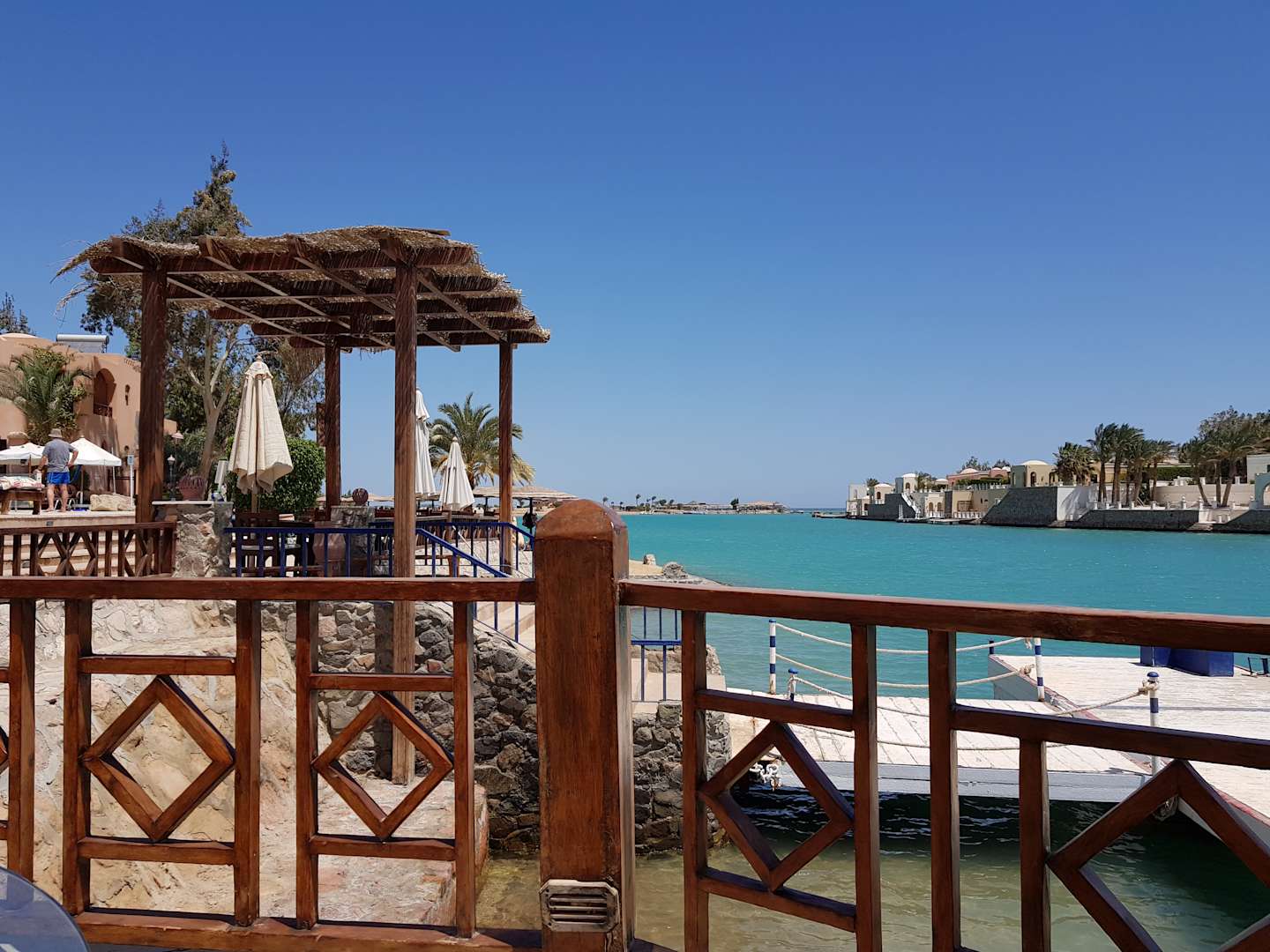 Hoteleigener Steg und im Hintergrund Zeytouna Beach