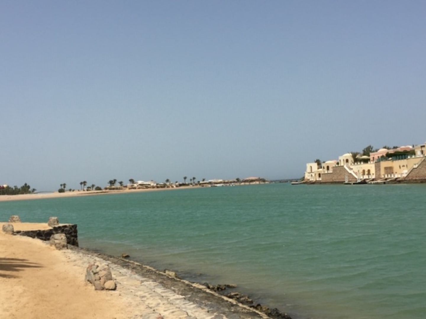 Strand am Hotel mit blick zum Rand der Lagune