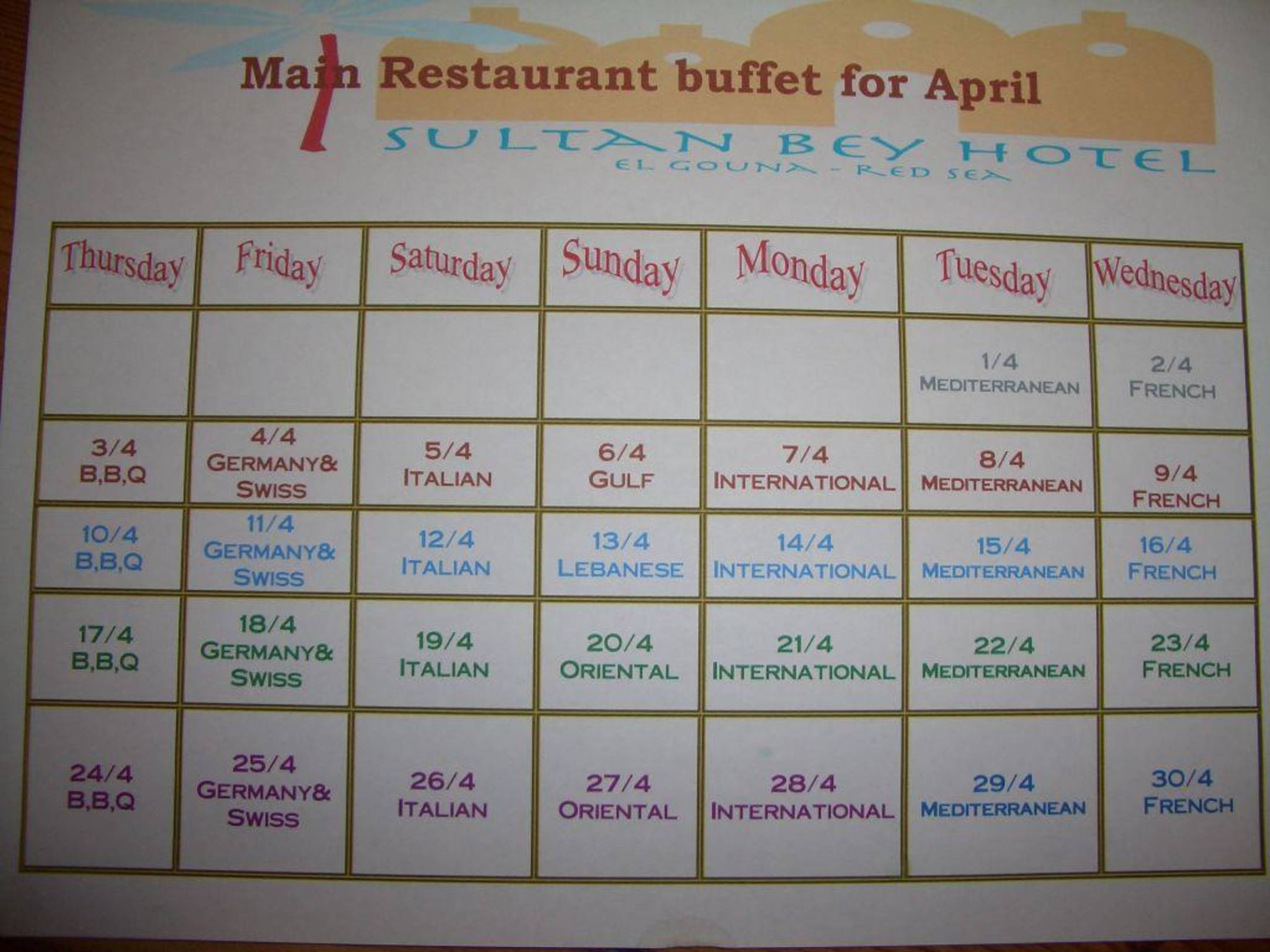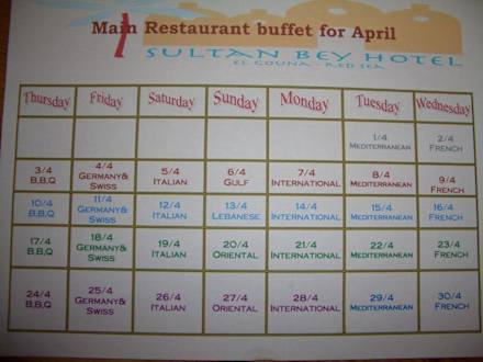 Menueplan im April 2008