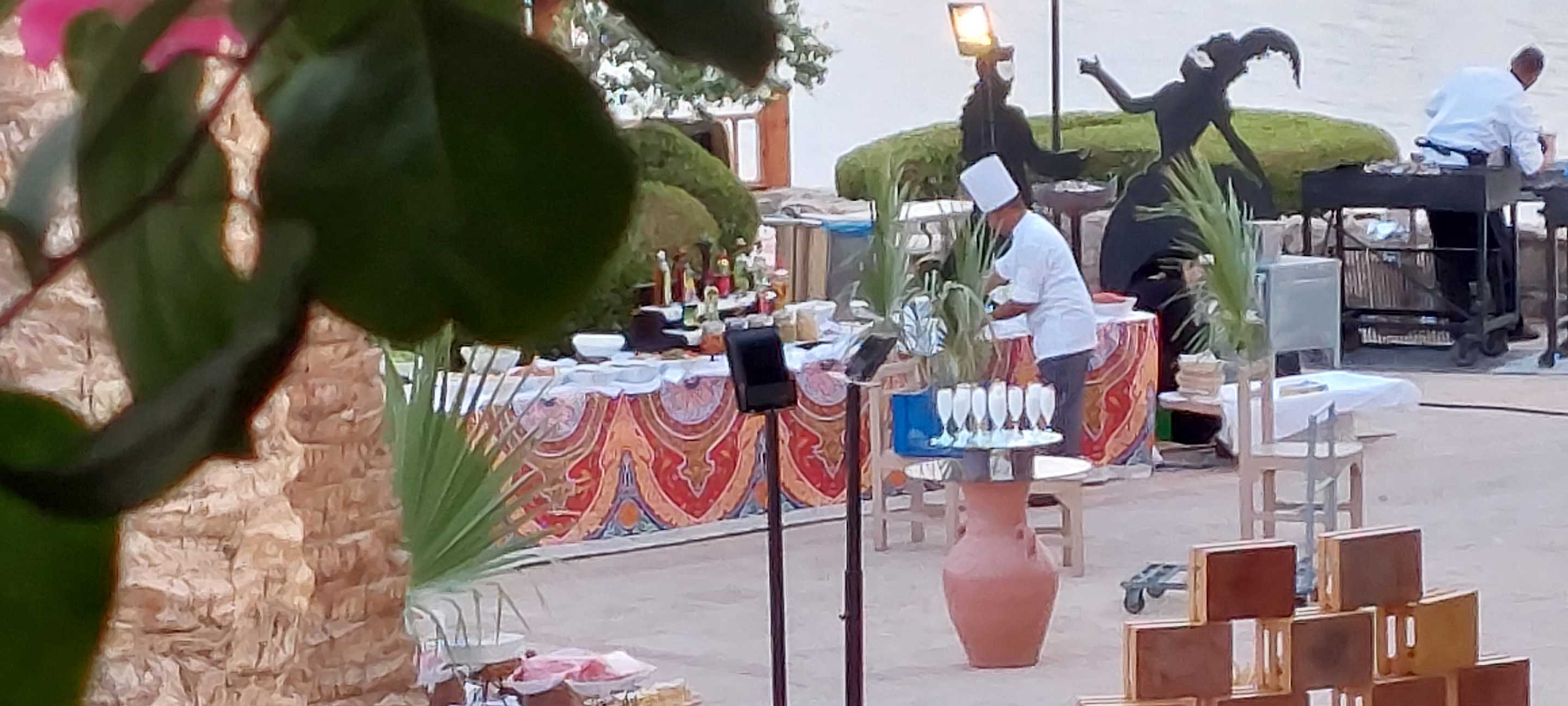 Beim liebevollen Vorbereiten des Abendessen vor dem Restaurant.