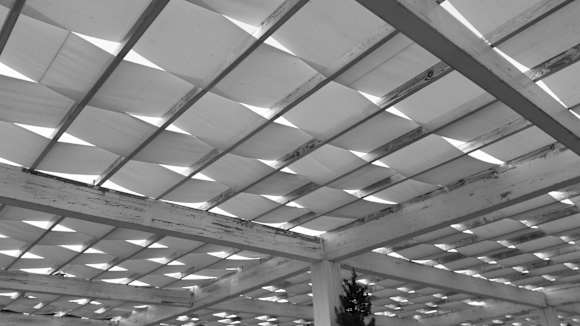 Schäbige Überdachung im Freiluftrestaurant