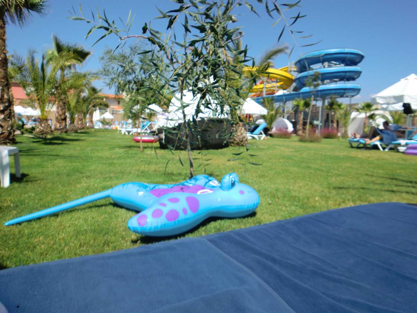 Liegewiese mit Blick auf Rutschen