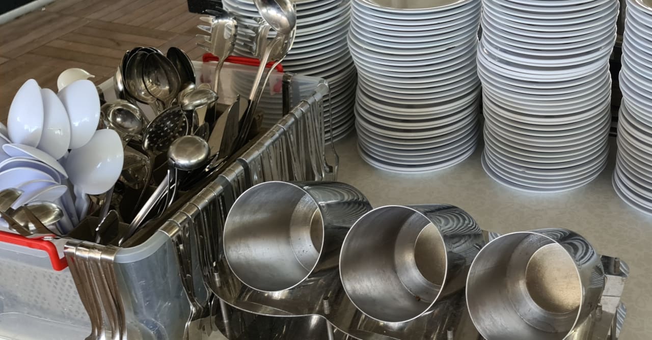 Teller und Besteckhalter dreckig