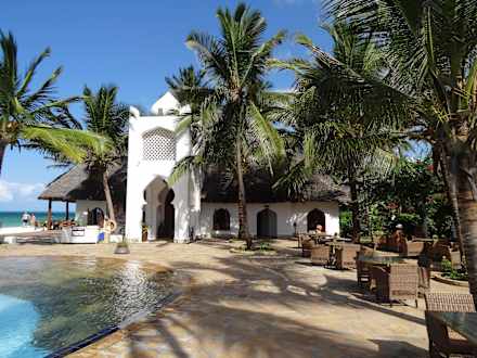 Blick zur Strandbar