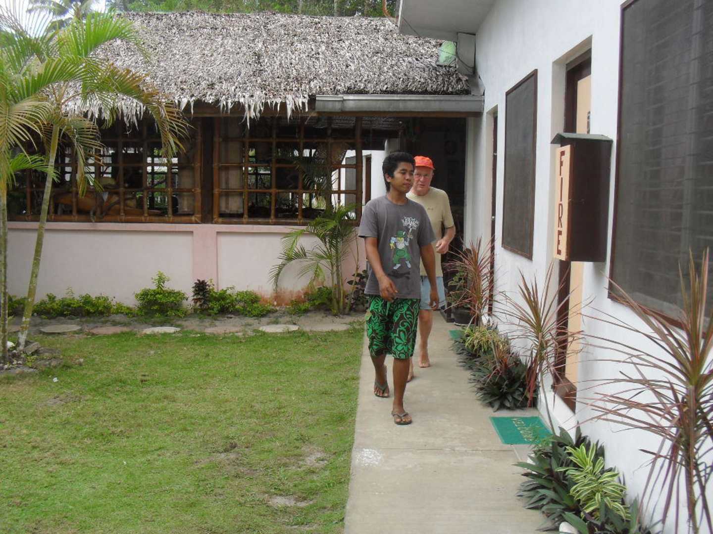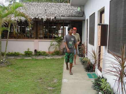 Blick auf das RestaurantRechts im Bild sind die Zimmer, im Hintergrund das Restaurant mit Rezeption
