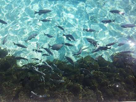 Fische am Bootssteg entlang