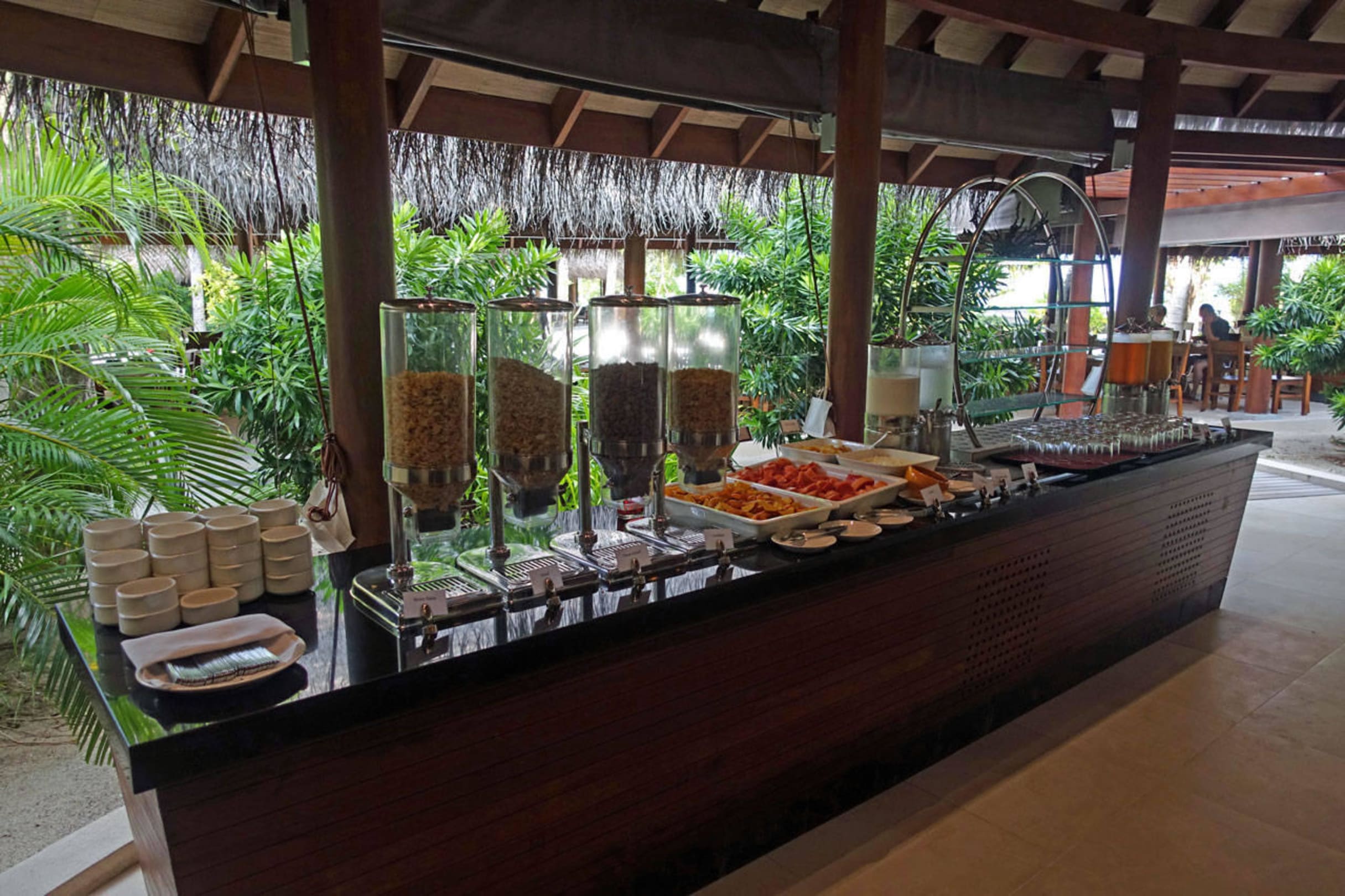 Cerealien und Obst auf dem Frühstücksbüffet