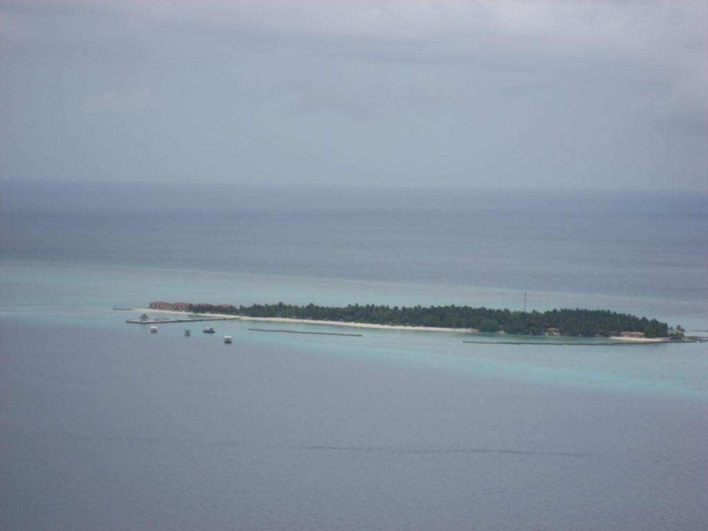 Blick auf SummerIslandVillage vom AirTaxi herausdieses Bild konnten wir beim Anflug auf Ziyaaraifushi vom Wasserflugzeug aus fotografieren