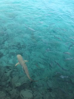 Schwarzspitzenhai bei der Fischfütterung am Steg