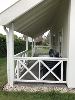 Seitlich ist eine überdachte Terrasse angebaut.