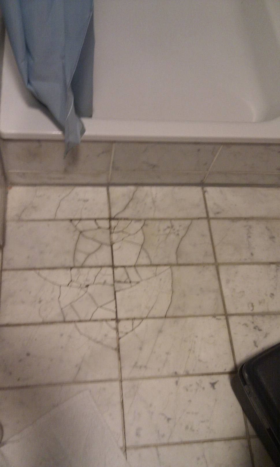 Kaputte Fliesen vor der Dusche