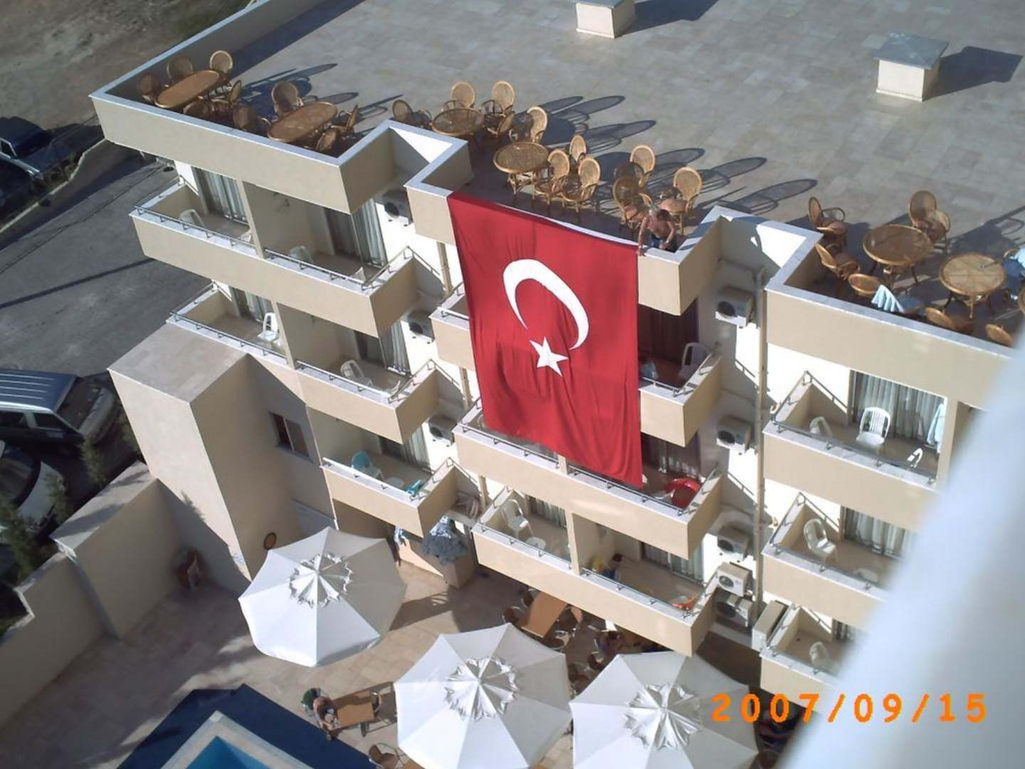 Türkischer AbendHier sieht man ein wenig von der Dachterrasse die leider viel zu wenig genutzt wird. Hier könnte man alles viel schöner gestalten, ein schöner Platz zum verweilen fehlt in diesem Hotel. Leider gibt es auf dieser Ebene, die auch die Rezeption beinhaltet kein WC.