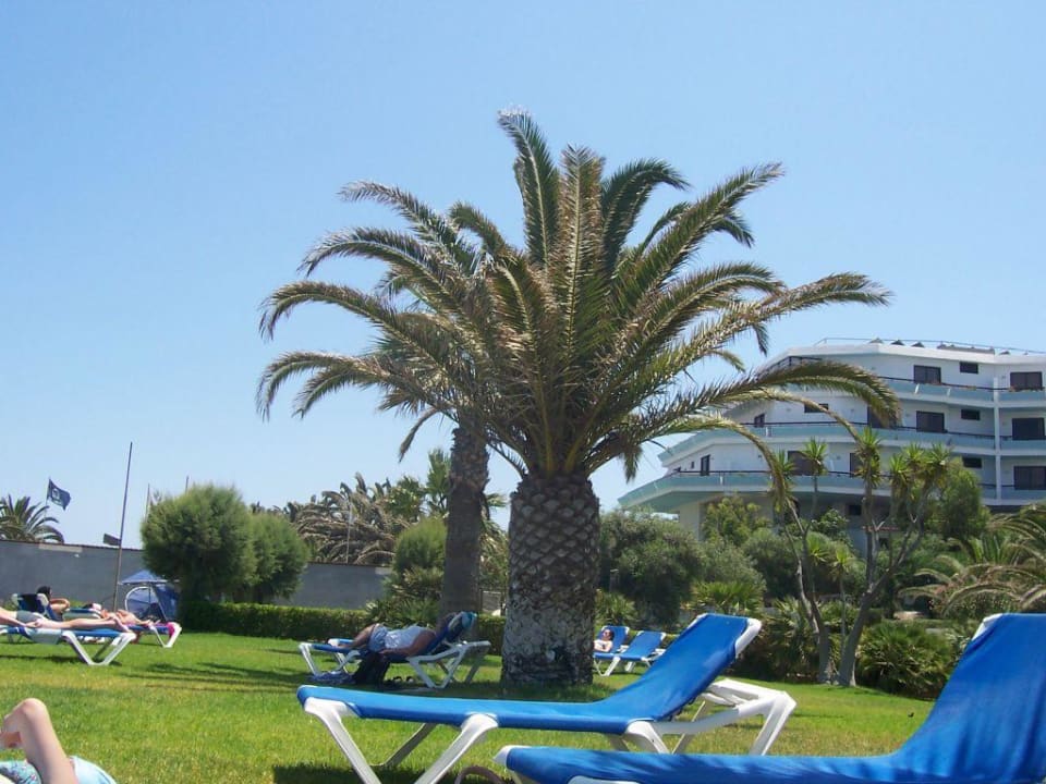 Wiese auf dem Weg zum StrandVom Sun Beach 1 erreicht man über die Poolanlage den Weg zum Strand. Hier ist noch eine kleine Wiese, auf der die Liegen jedoch auch 3 Euro kosten, hier sogar ohne Sonnenschirm. Gegen ausgebreitete Badehandtücher sagt aber niemand was. So gehts dann auch gemütlich, kostenlos und trotzdem in Strandnähe. Weiterer Vorteil: Der Weg zum Pool ist kürzer ;)