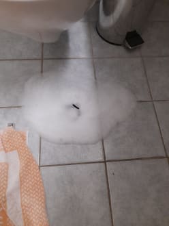 So sieht es nach dem Duschen im Bad aus.