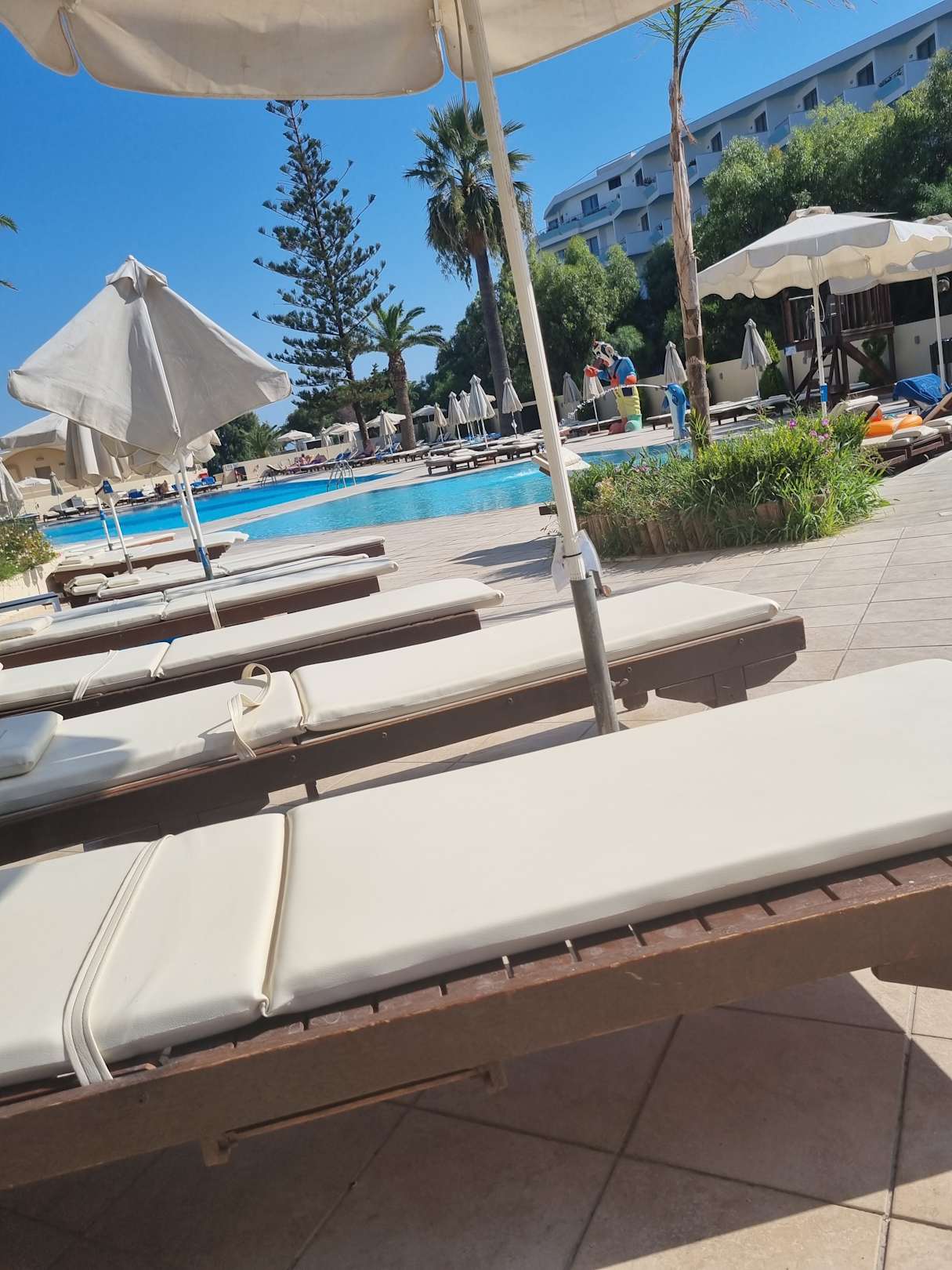 Blick über die Poolanlage am Hauptgebäude