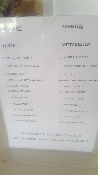 tolle Speisekarte zum Mittagessen