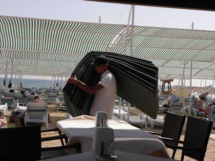 Immer fleissig, der Strandboy