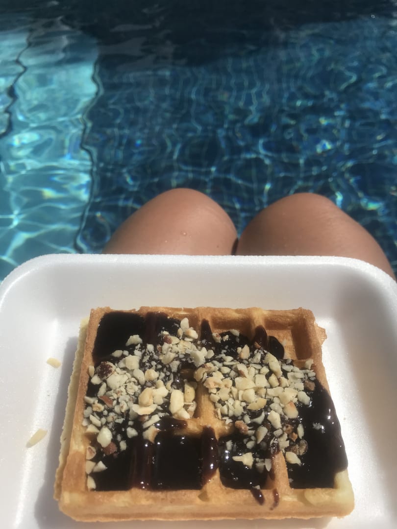 Mit der leckeren Waffel vom Pool