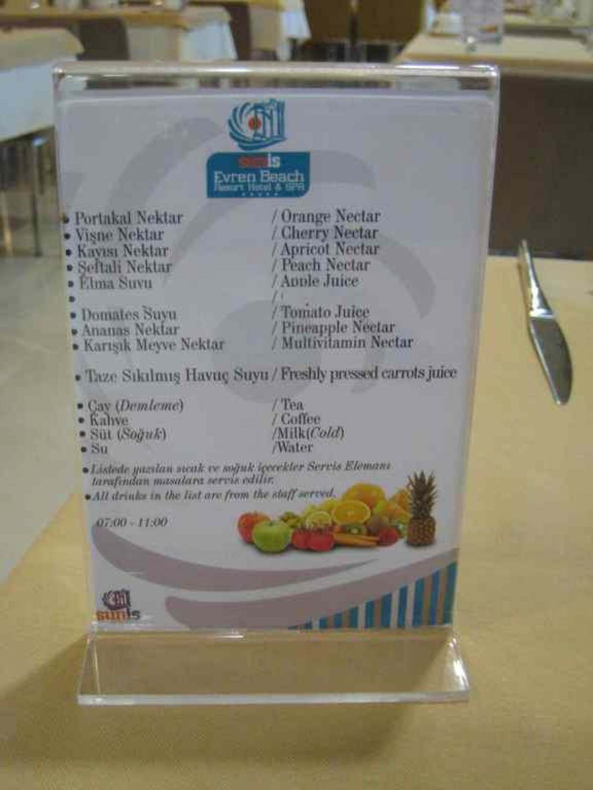 Carte boissons petit déjeuner