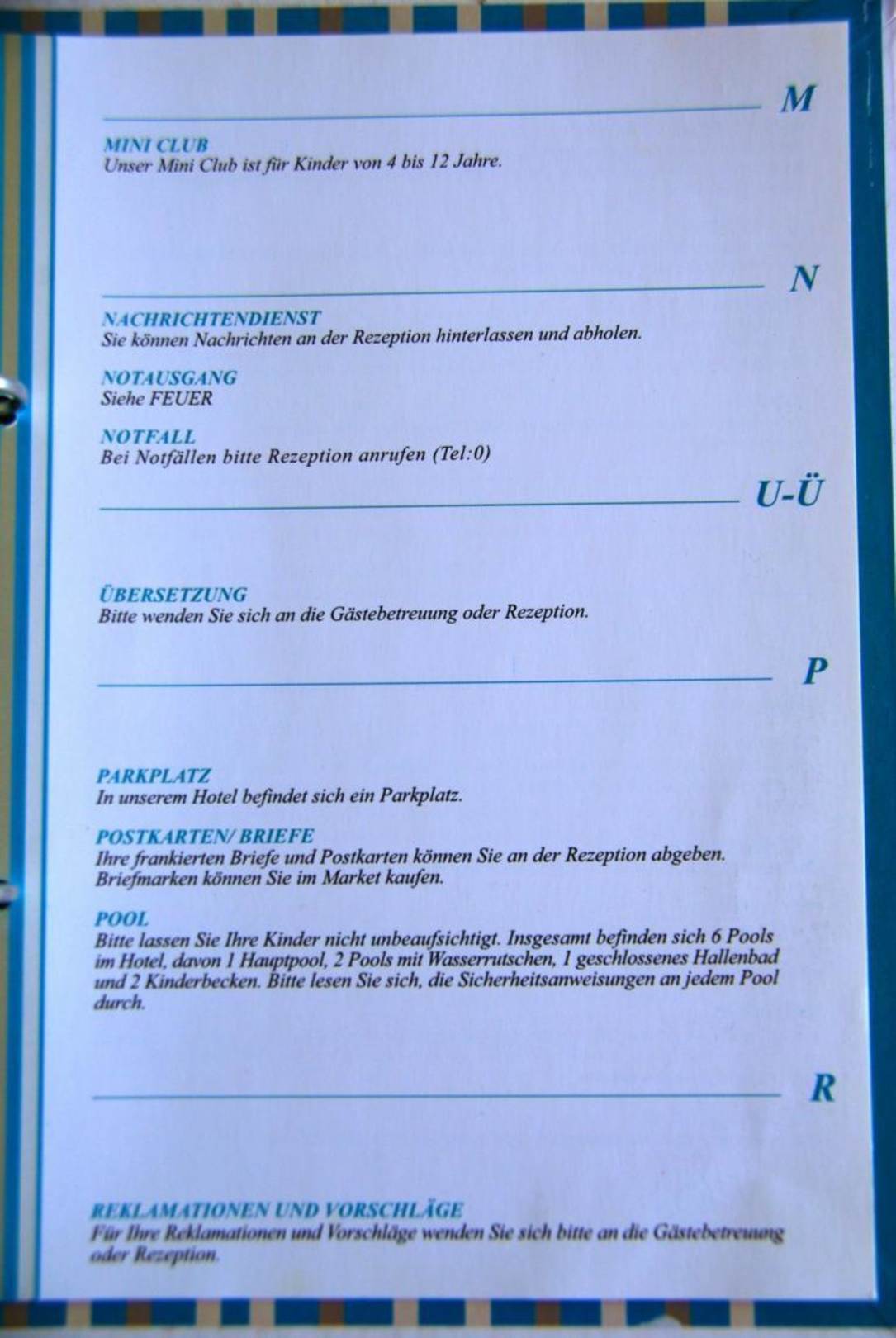 Hinweise zum Hotel Anweisungen