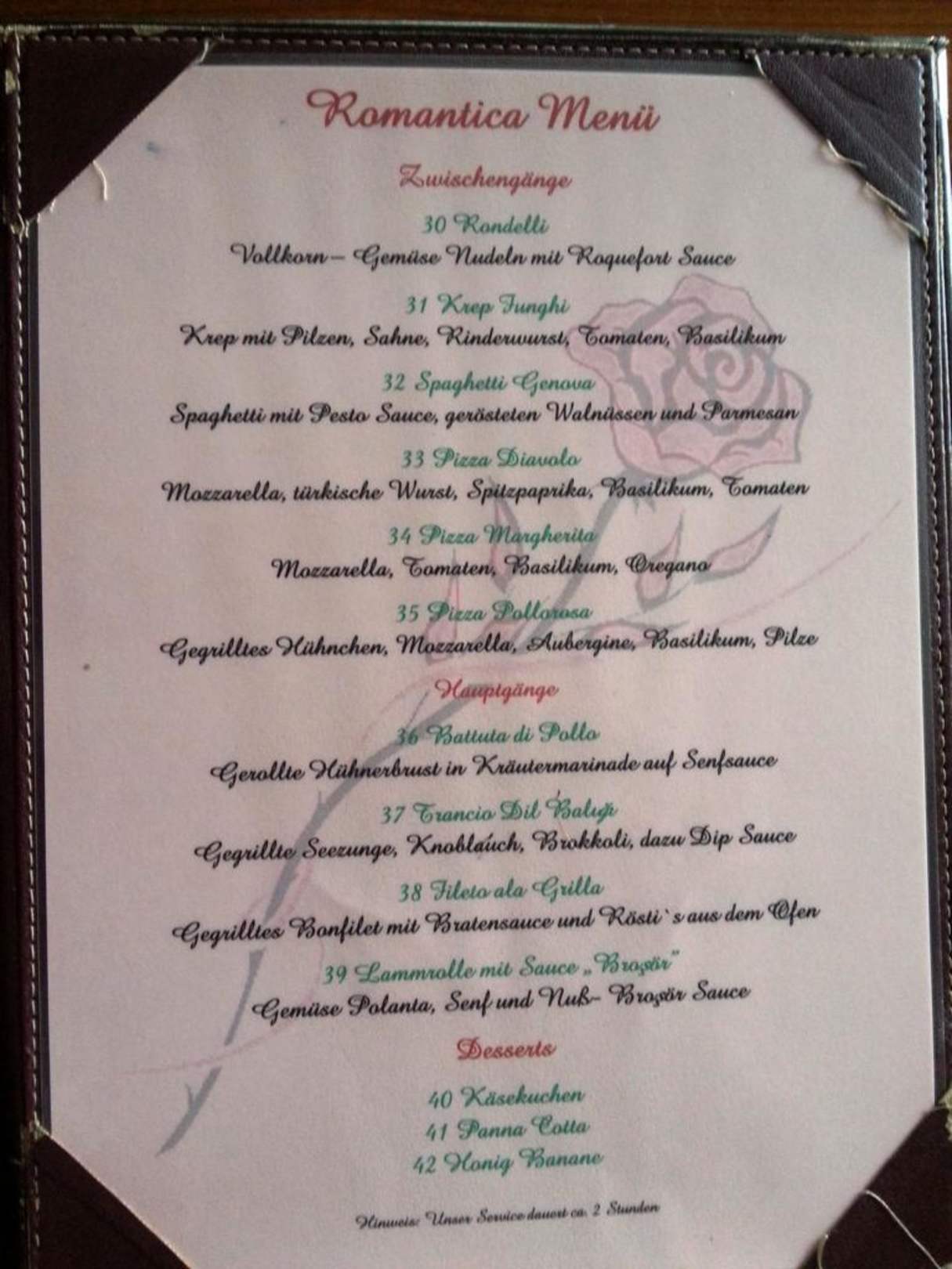Karten für Spez.Restaurant Menüauswahl