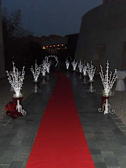 Geschmückter Zugang zum Hotel für ein Brautpaar