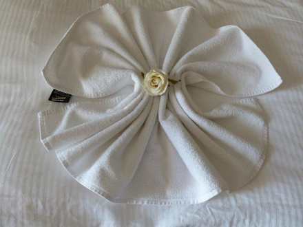 Deko auf dem Bett mit Handtüchern