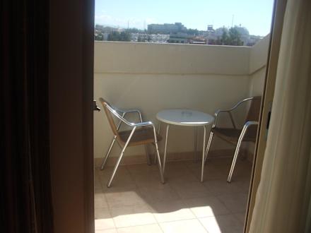 Hier sieht man den Blick vom Zimmer mit seitl. Meerblick auf den Balkon.