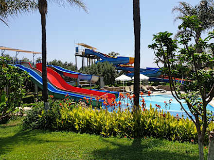 Kleinkindrutschen im vorderen Bereich sowie Rutschen für Größere im hinteren Teil
