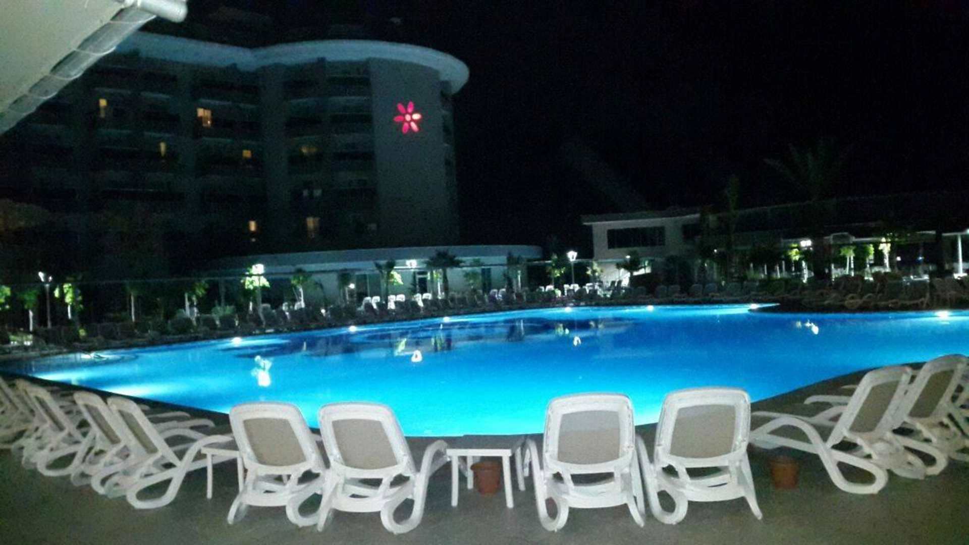 Blick vom Pool aufs Hotel