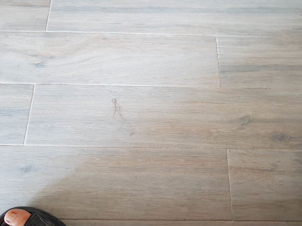 Dreckiger Boden, Haare liegen rum.