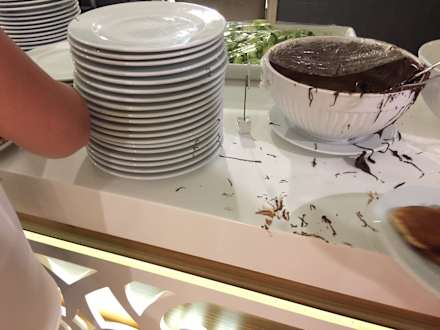 Lecker!! Alle Teller versifft. Kein Personal interessiert sich dafür. Der Küchenchef ist auch ein Fall für Fielmann!! 6 Sterne für den Mülleimer! Das über 14 Tage!