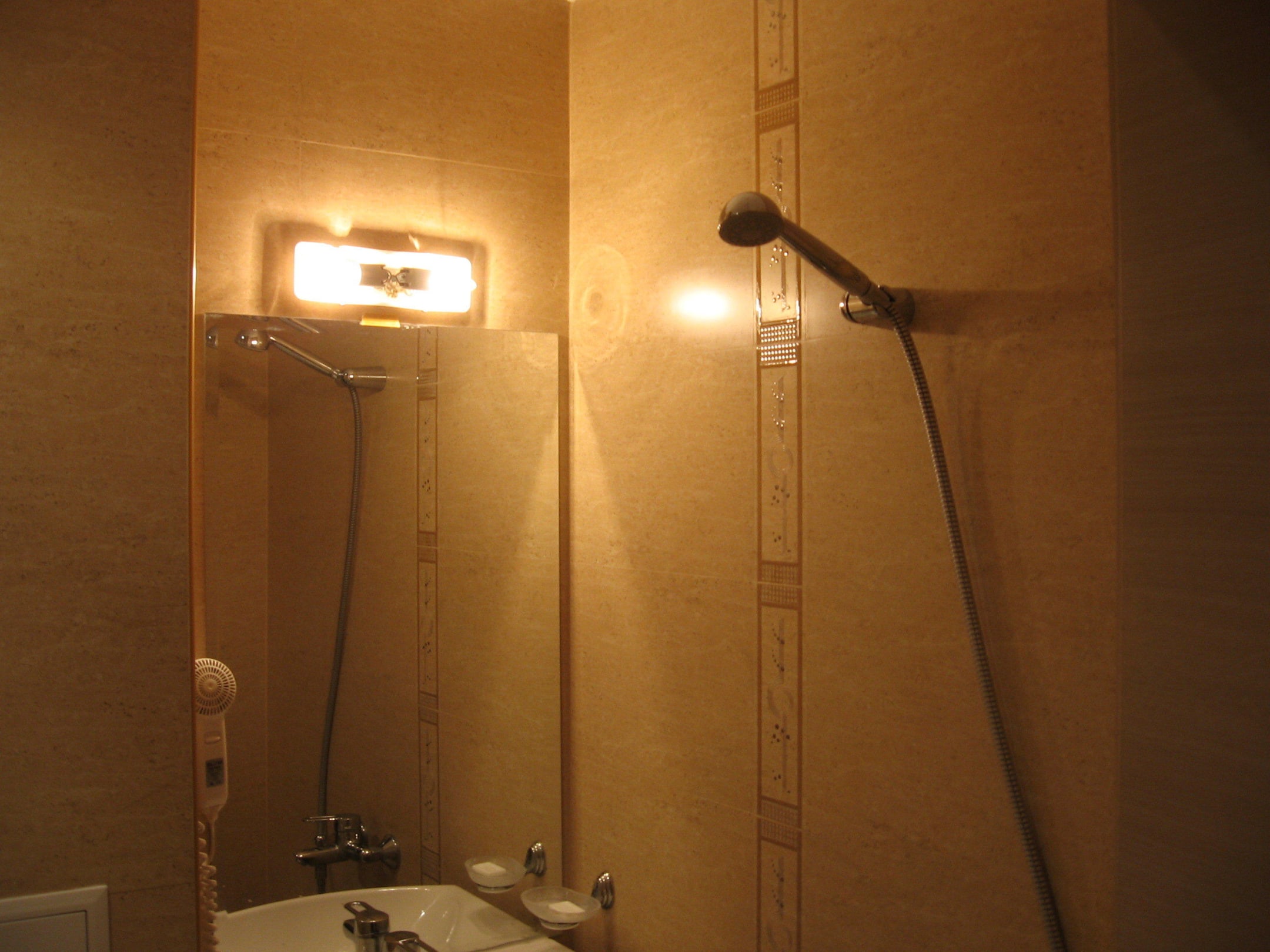 Stromschlaggefahr Lampe ohne Verkleidung neben Fön