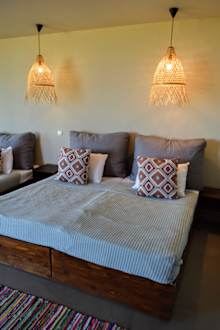Unser Zimmer. Die Lampen waren komischer Weise nicht korrekt links und rechts vom Bett angebracht. Wir haben dann später das Bett zurechtgerückt...