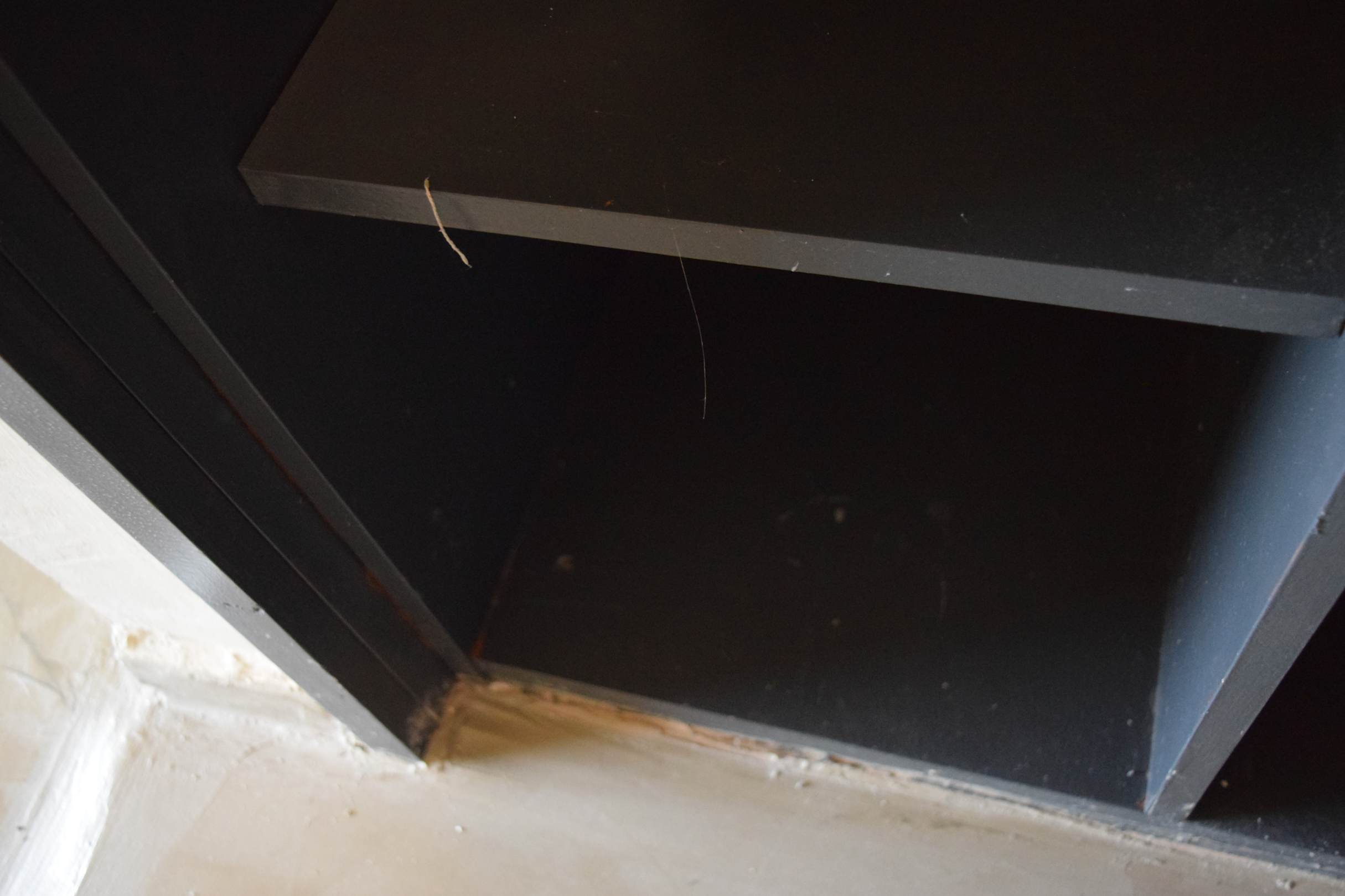 Offener Schrank im Zimmer. Schmutzig.
