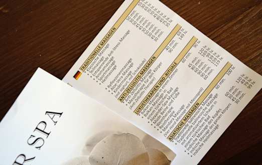 SonstigesPreisliste vom Spa-Center und für Massagen...
