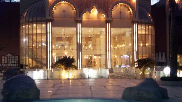 The enterance to the Swimming Pool and Beach at Nightthe view of the entrance of the swimming Pool and beach of sunny days hotel at night