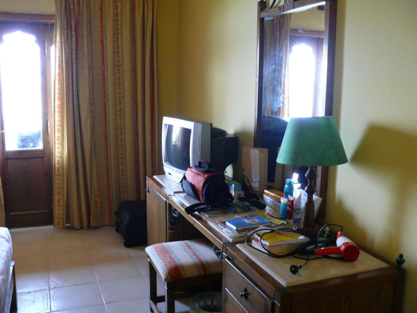 Toaletka & telewizorTrochę mieliśmy bałagan. Duża toaletka z szufladami po jednej stronie oraz schowana lodówka po drugiej stronie.