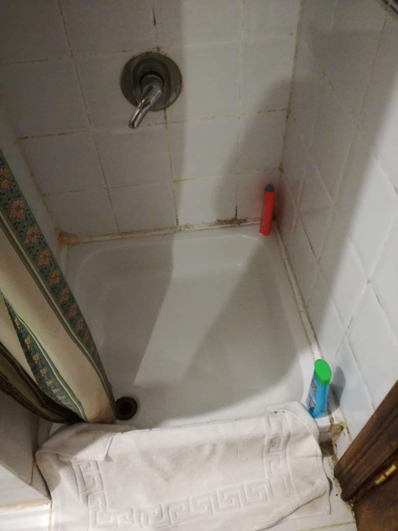 Die Dusche ist ganz winzig aber es reicht aus, wenn der schimmel nicht überall wäre .