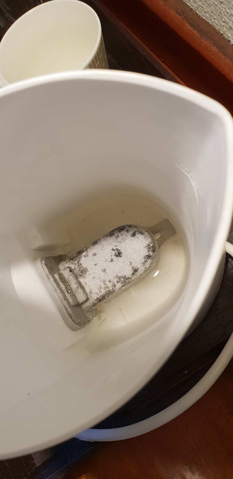 Wasserkocher, noch mit Restwasser von vorherigen Hotelgästen.