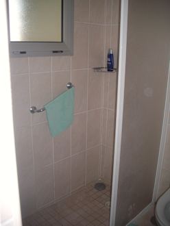 Badezimmer. Hier: Dusche mit zu kurzer TrennwandBadezimmer. Hier: Dusche mit zu kurzer Trennwand. Überschwemmungsgefahr