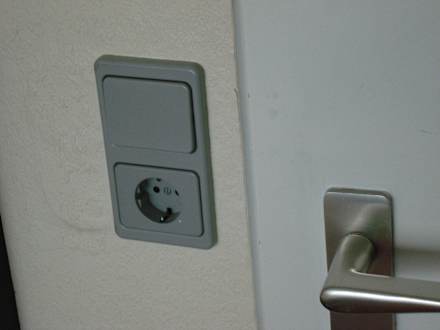Drecktatzen an TürHier sind um Schlter und am Türblatt Drecktatzen zu sehen, die offenbar noch nie weggewischt wurden