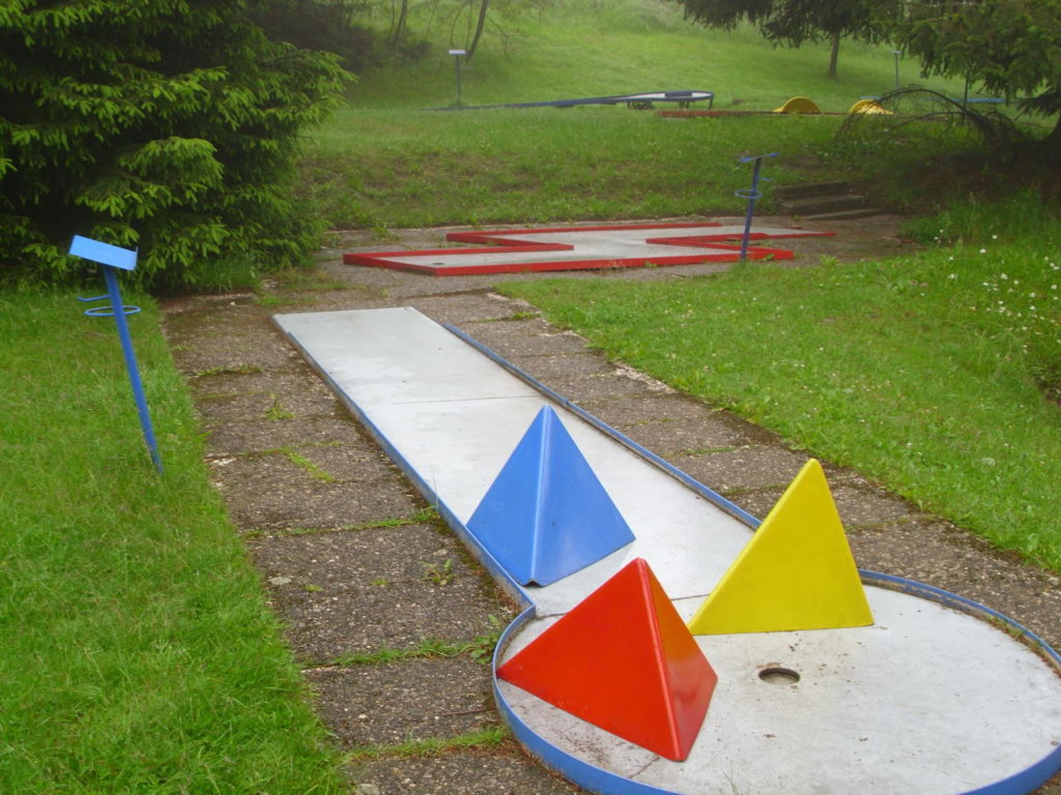 Leider konnten wir die Anlage nicht nutzen, da aufgrund des schlechten Wetters die Bahnen unter Wasser standen. Es gibt aber alle Bahnen, die man auf jedem Minigolfplatz findet.