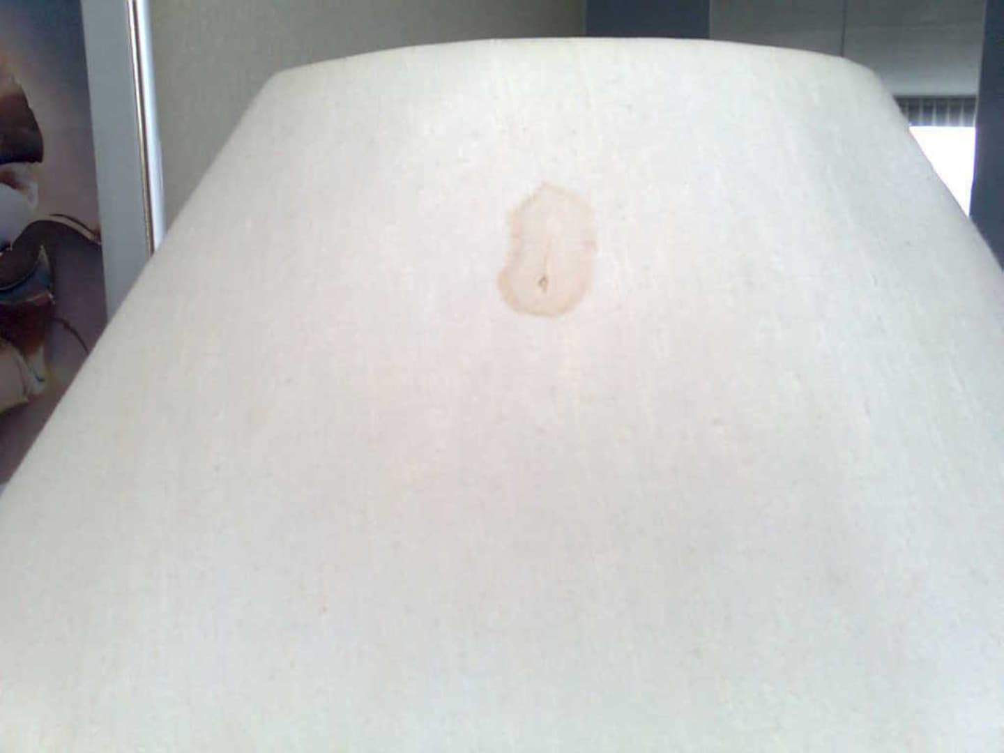 Fleckig und dreckig, LampenschirmSauberkeit scheint hier ein Fremdwort zu sein.... Das Foto zeigt einen Lampenschirm.