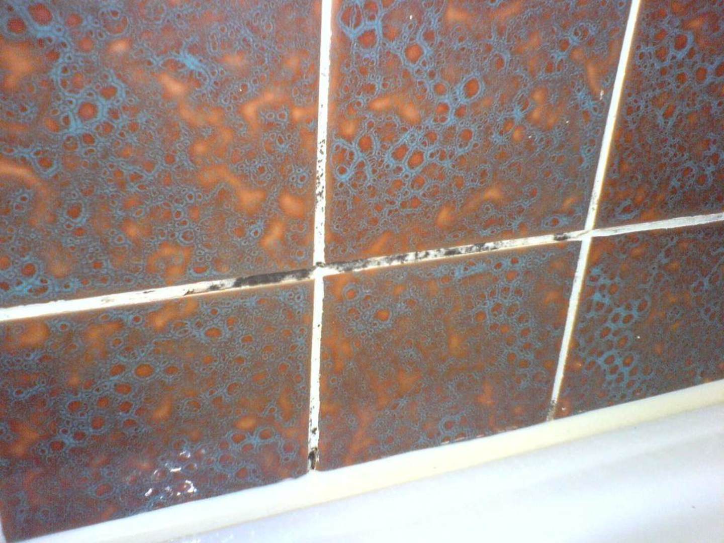 In den Fugen im Badezimmer blühte der Schimmel.