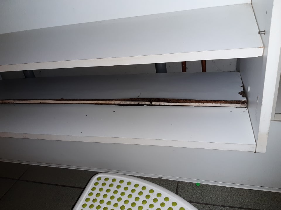 Das Regal unter dem Waschbecken
