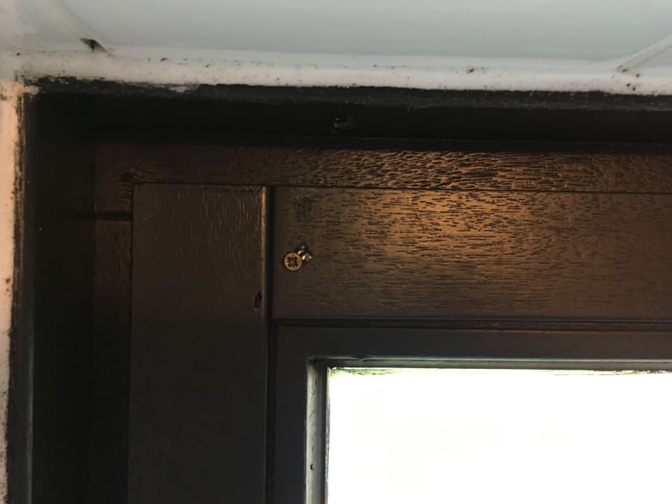 Zugeschraubtes Badezimmerfenster. Lüften war durch das Fenster nicht möglich.