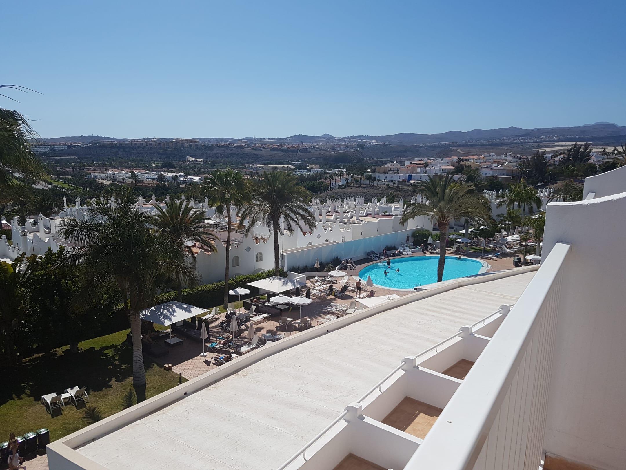 Ausblick in den Garten und auf 1 Pool von dreien