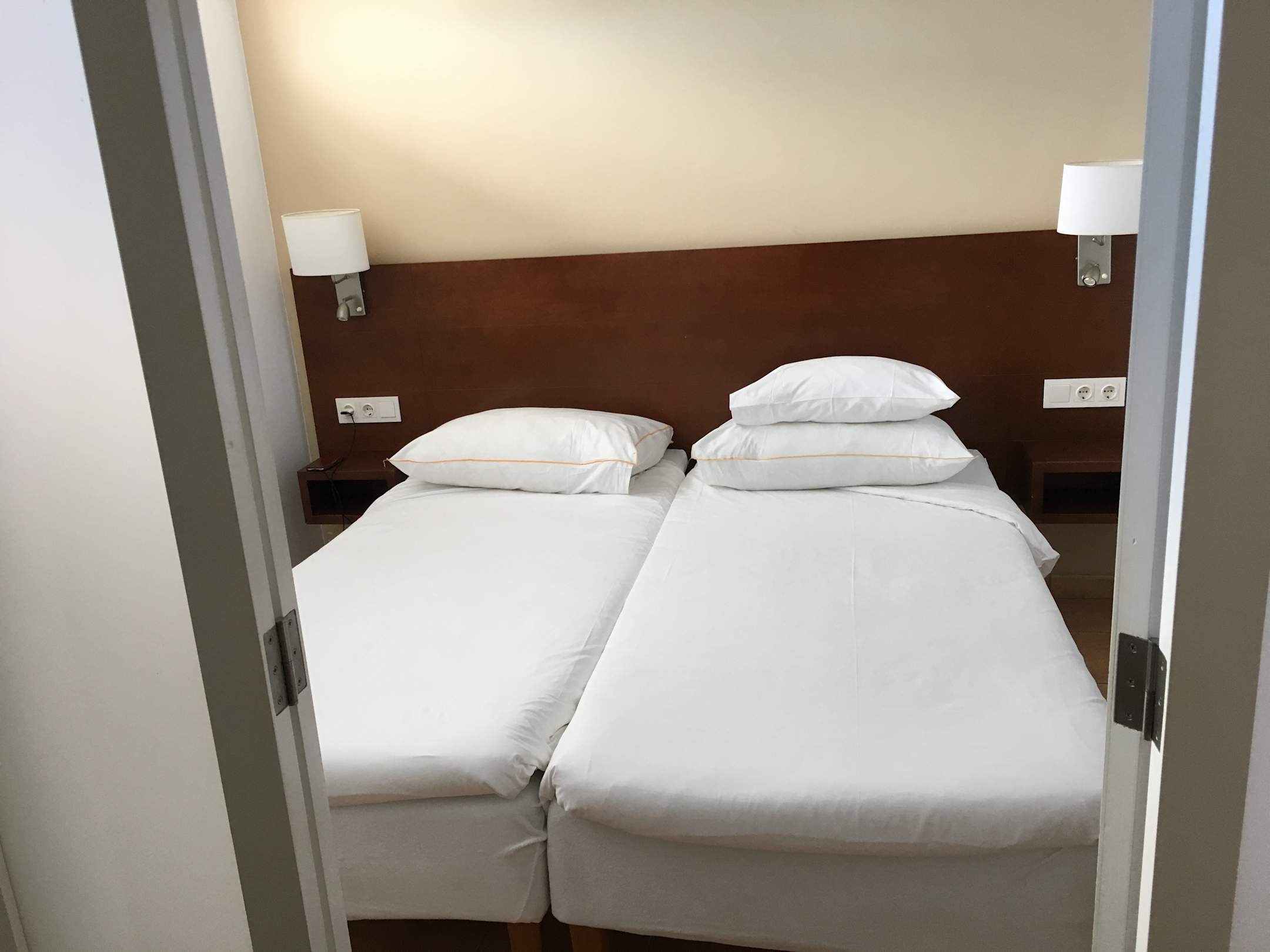 Bett, durch Falttür vom Rest des Zimmers getrennt
